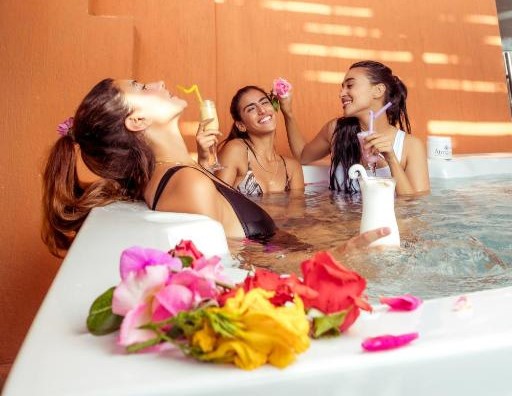 ، في حين يتوفر مركز محترف للياقة البدنية على الشاطئ ومواقف للسيارات مجاناً ومسبح مُدفأ وشرفات خاصة وتلفزيون بشاشة مسطحة مع قنوات فضائية ومرافق صنع الشاي/القهوة وآلات الإسبريسو في الفيلات