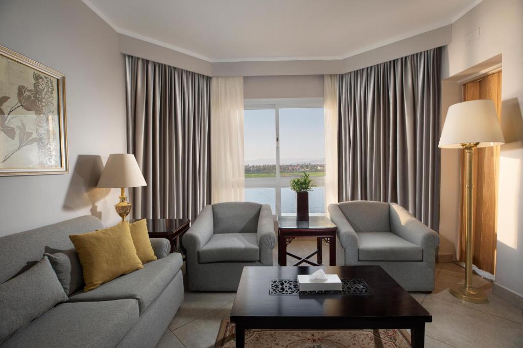 • On the banks of the Nile, this resort offers air conditioned rooms with views of the river, tropical grounds, or outdoor pools. It is located in the center of Luxor and half a mile from Luxor Temple.